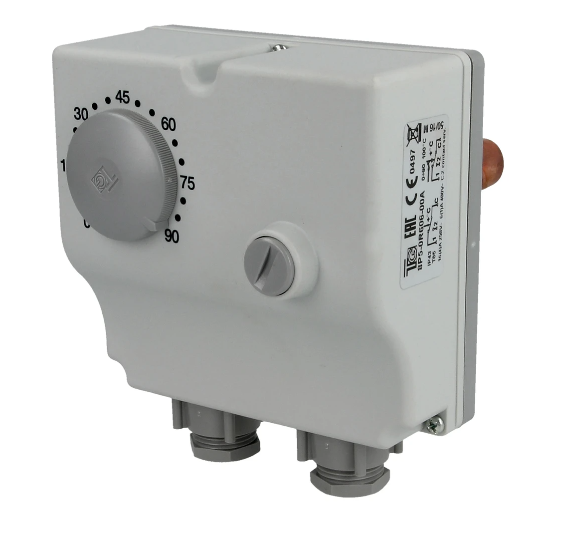 De dompelthermostaat regelt en bewaakt thermische processen in warmteover-drachtsystemen, in apparaten- en machinebouw, in de ovenbouw of in verwarming- en airconditioningtechnologie en werkt volgens het principe van vloeistofuitzetting.